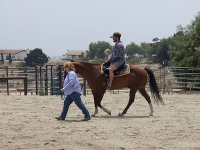 Here are the photos of Joe on the horse. I am not comfortable enough with my horse skills to reign them and hold Joe, so I had my mom walk Dozer and I rode with Joe. He was a little hesitant at first but once we got started going he started laughing and squealing, we set him on the saddle by himself for a while, but that was a bit of a mistake because it was hard to get him off of the horse with out some screaming.